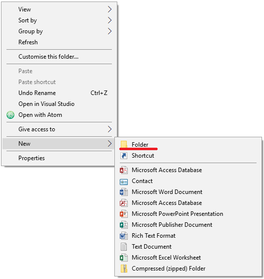 Find where you would like to place your project folder. We suggest that you do this in your ready share folder. Right Click to open the context menu -> Hover over "New" -> Press on "Folder".