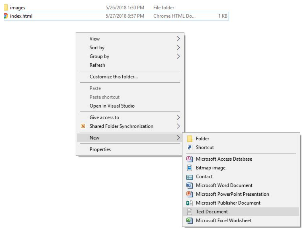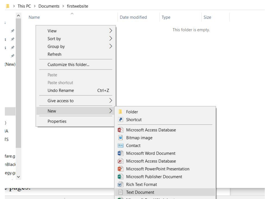 Inside your "firstwebsite" folder, right click and create a new text file.